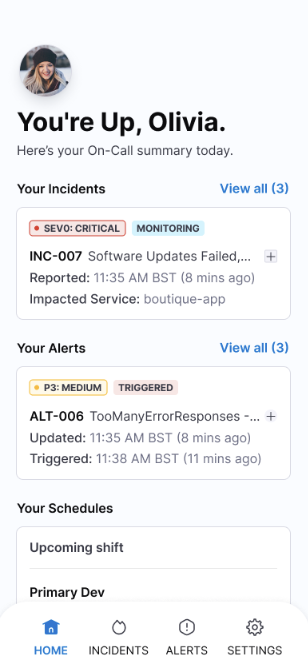 - Schedule Awareness: Check upcoming on-call shifts and coverage