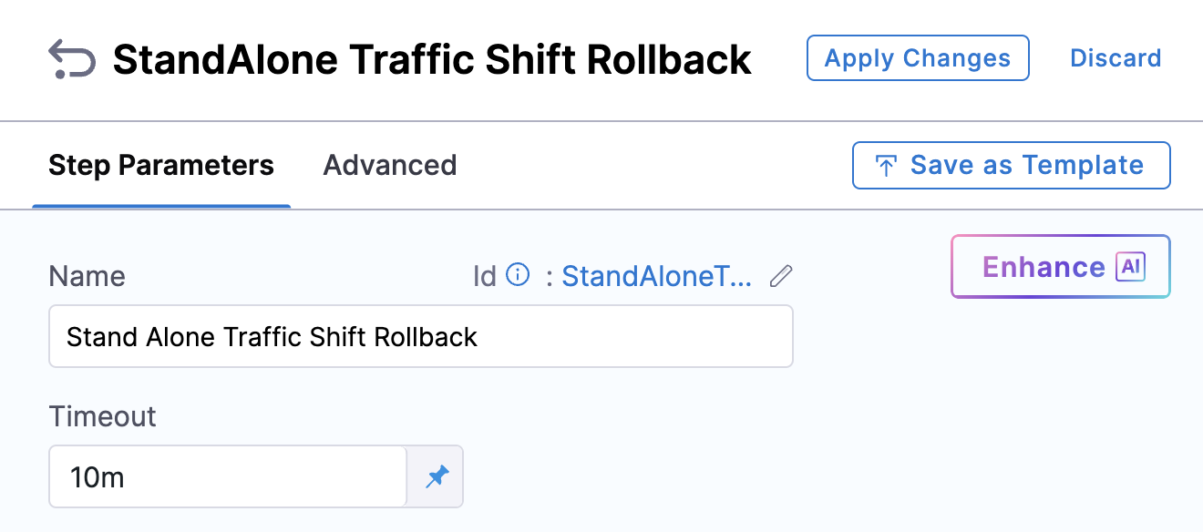 • Standalone Mode: Resets the original forward configuration for all listener rules used in the stage using the Standalone Traffic Shift Rollback step.