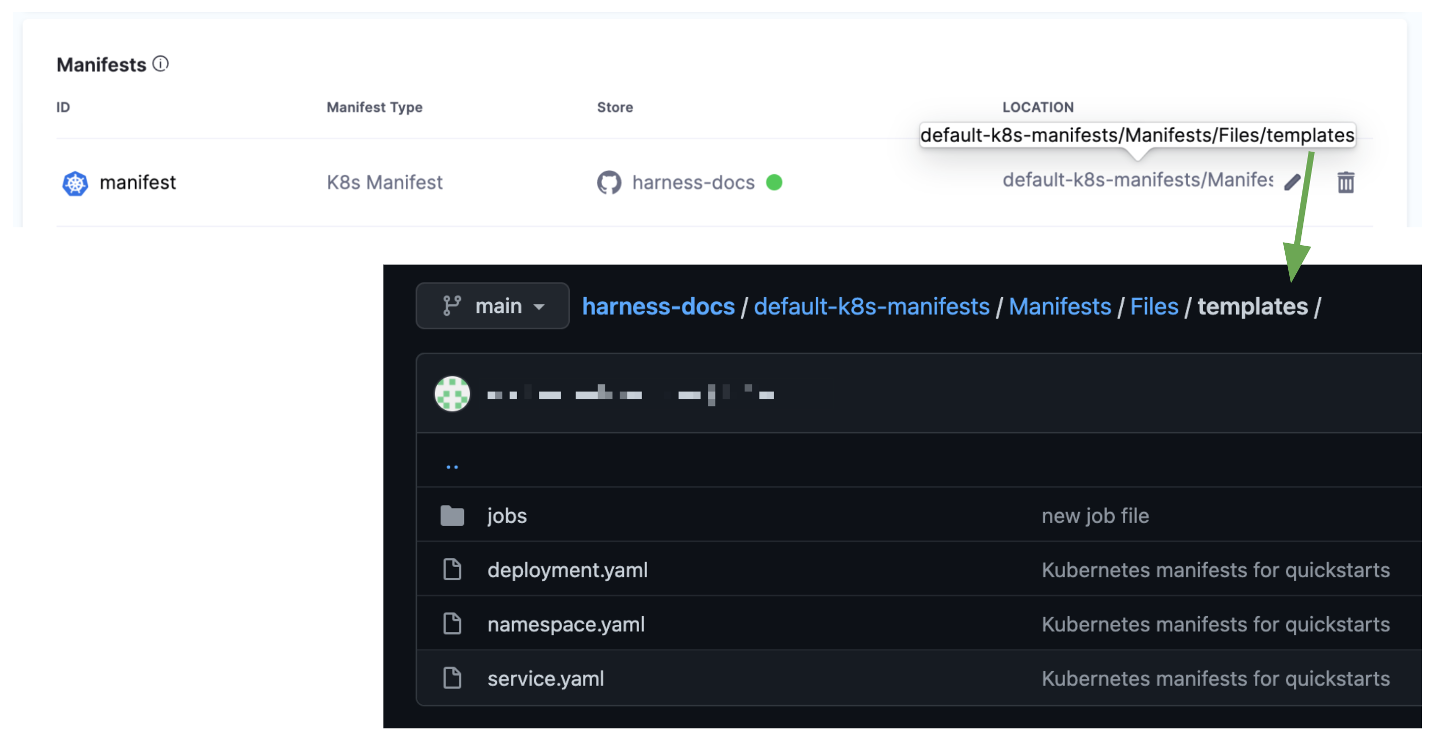For example, if the path in Manifests is default-k8s-manifests/Manifests/Files/templates and the Job manifests is in default-k8s-manifests/Manifests/Files/templates/jobs/job.yaml you must enter jobs/job.yaml in File Path.