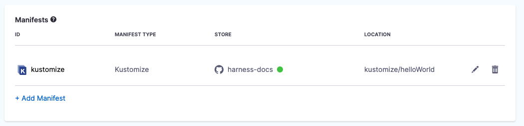 https://github.com/wings-software/harness-docs/blob/main/kustomize/helloWorld/kustomization.yaml.- Manifest Identifier: enter kustomize.
