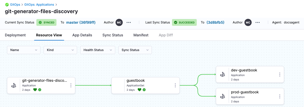 In your GitOps project, go to Deployments > GitOps > Applications, and then select your application.