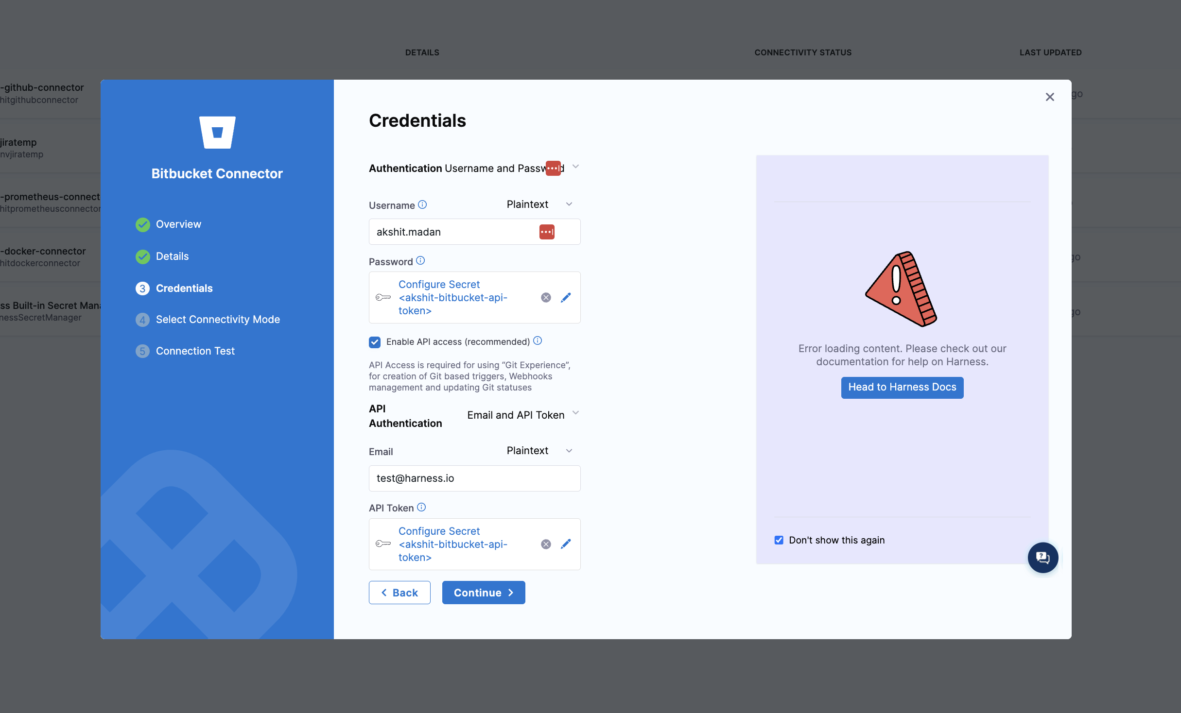 • Bitbucket Data Center (On-Prem): Use HTTP access tokens only. API tokens and App Passwords are not supported.