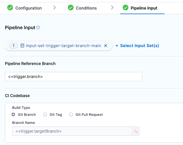 Now that you have a pipeline and input set in your default branch, create a trigger that uses the input set you just created.