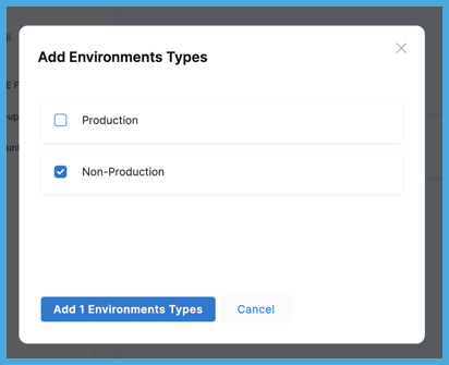 For Environments, you can choose Production or Non-Production.