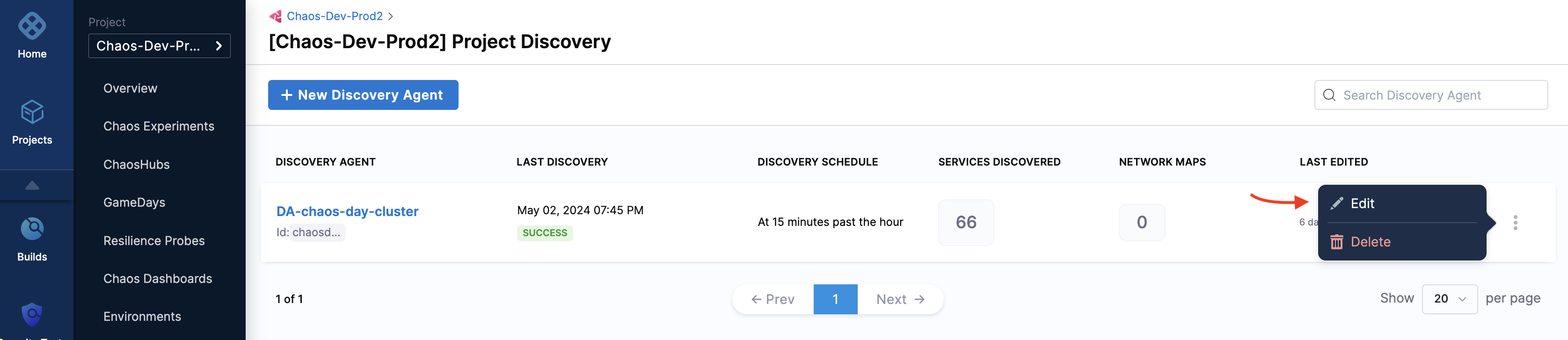 1. To edit a discovery agent, navigate to the agent (that you created earlier) and click Edit. Make the necessary changes to the required fields.