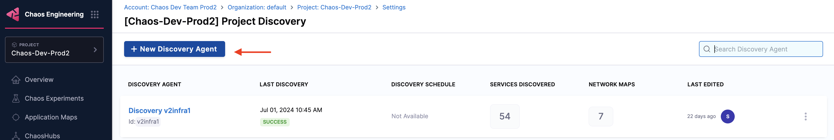 7. Click Create New Discovery Agent on the top right corner of the page.