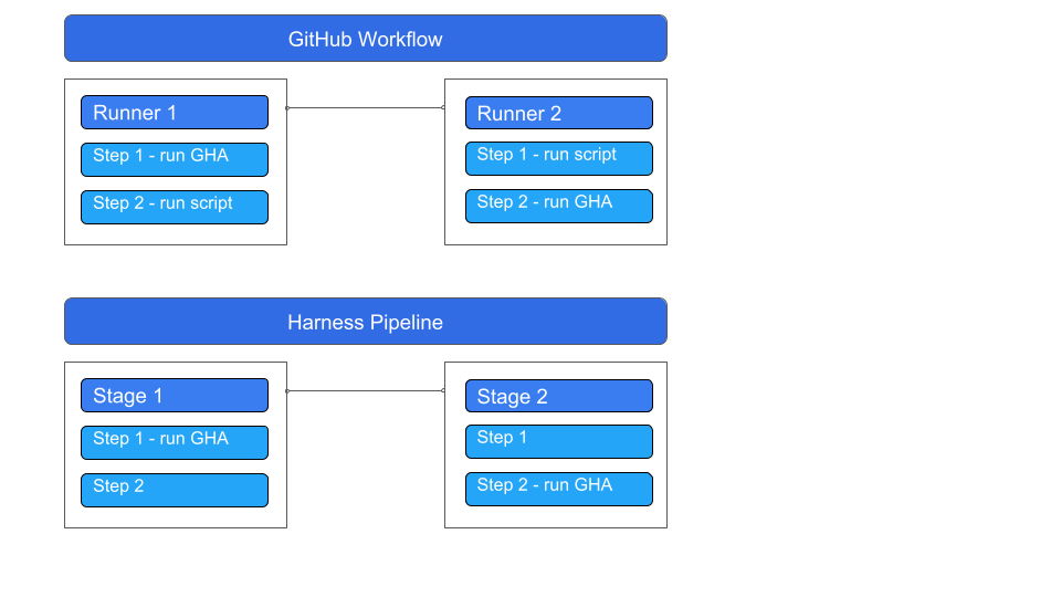 • GitHub and Harness use slightly different terminologies for similar concepts: