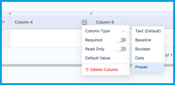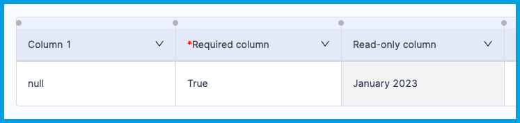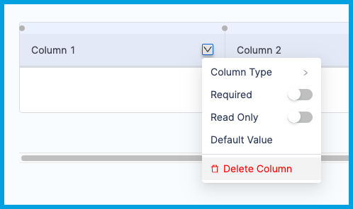 To specify required or read-only columns, select the Arrow in the column header, and select Required or Read-Only.