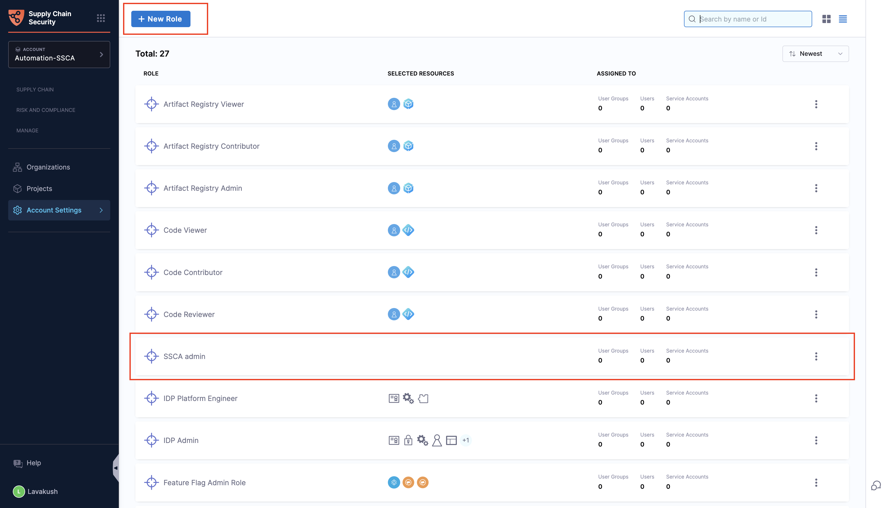 - Within the role, select Supply Chain Assurance. This action will display the SCS Permissions.