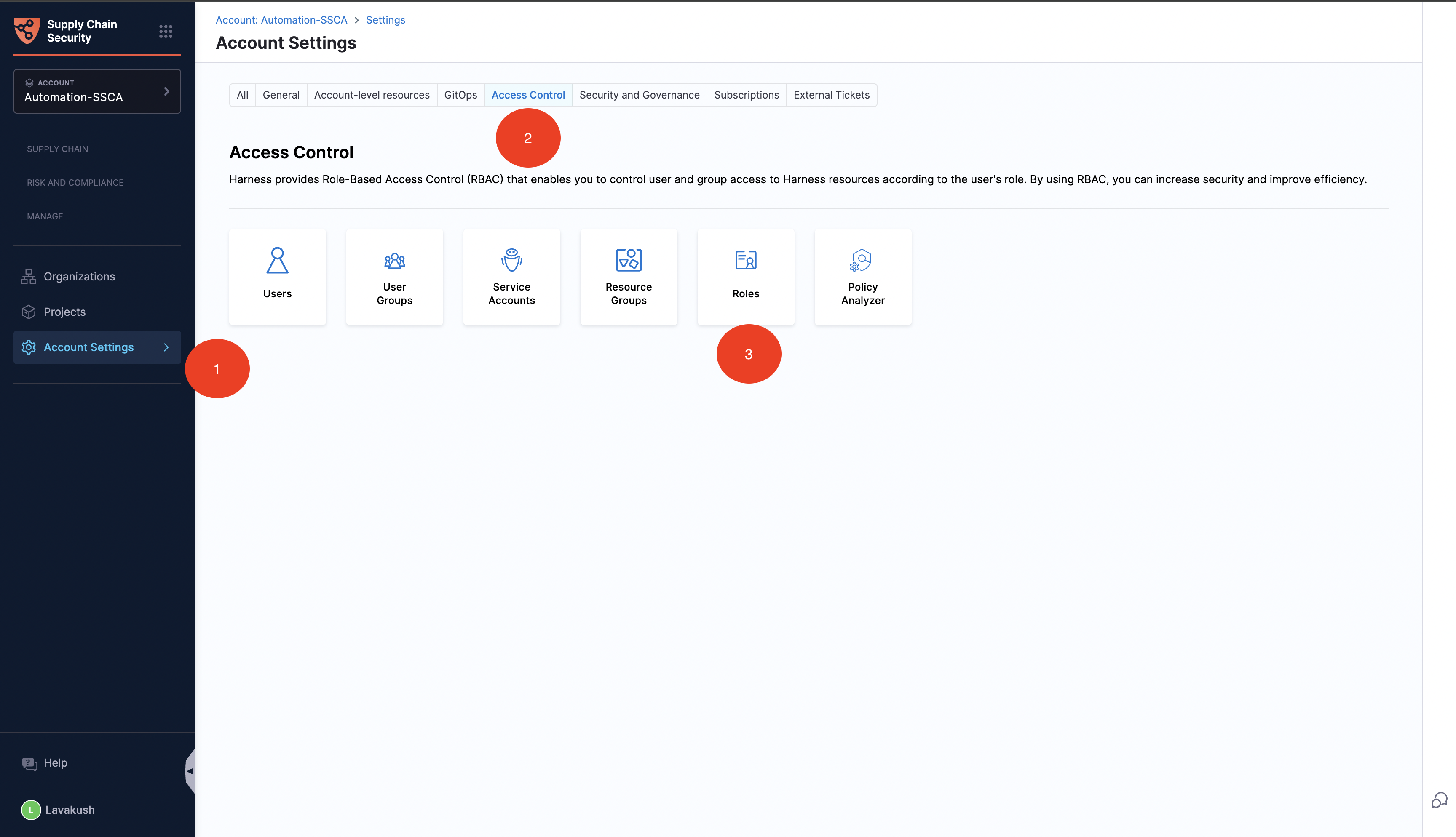 - Navigate to Account Settings > Access Control > Roles within your Harness Account.