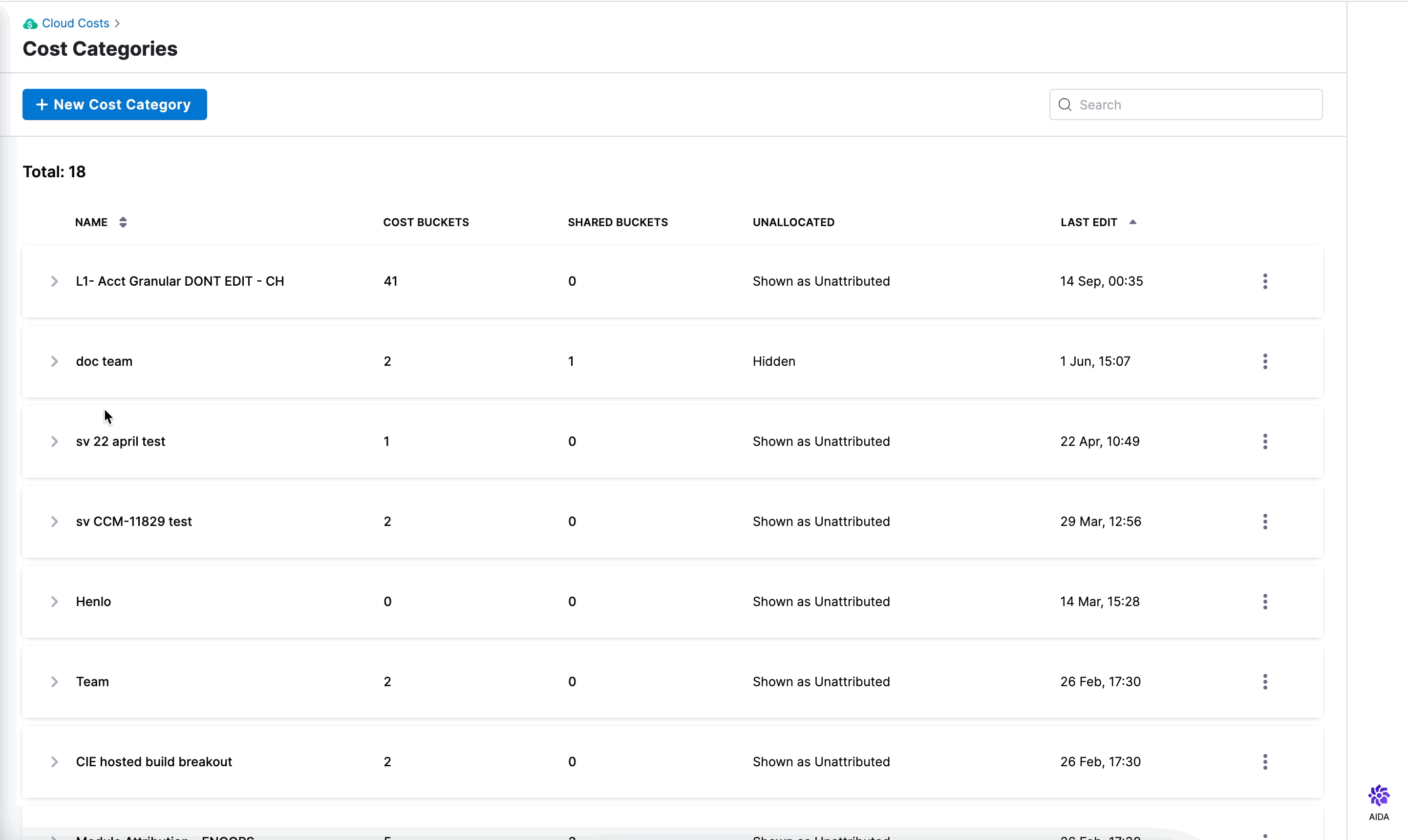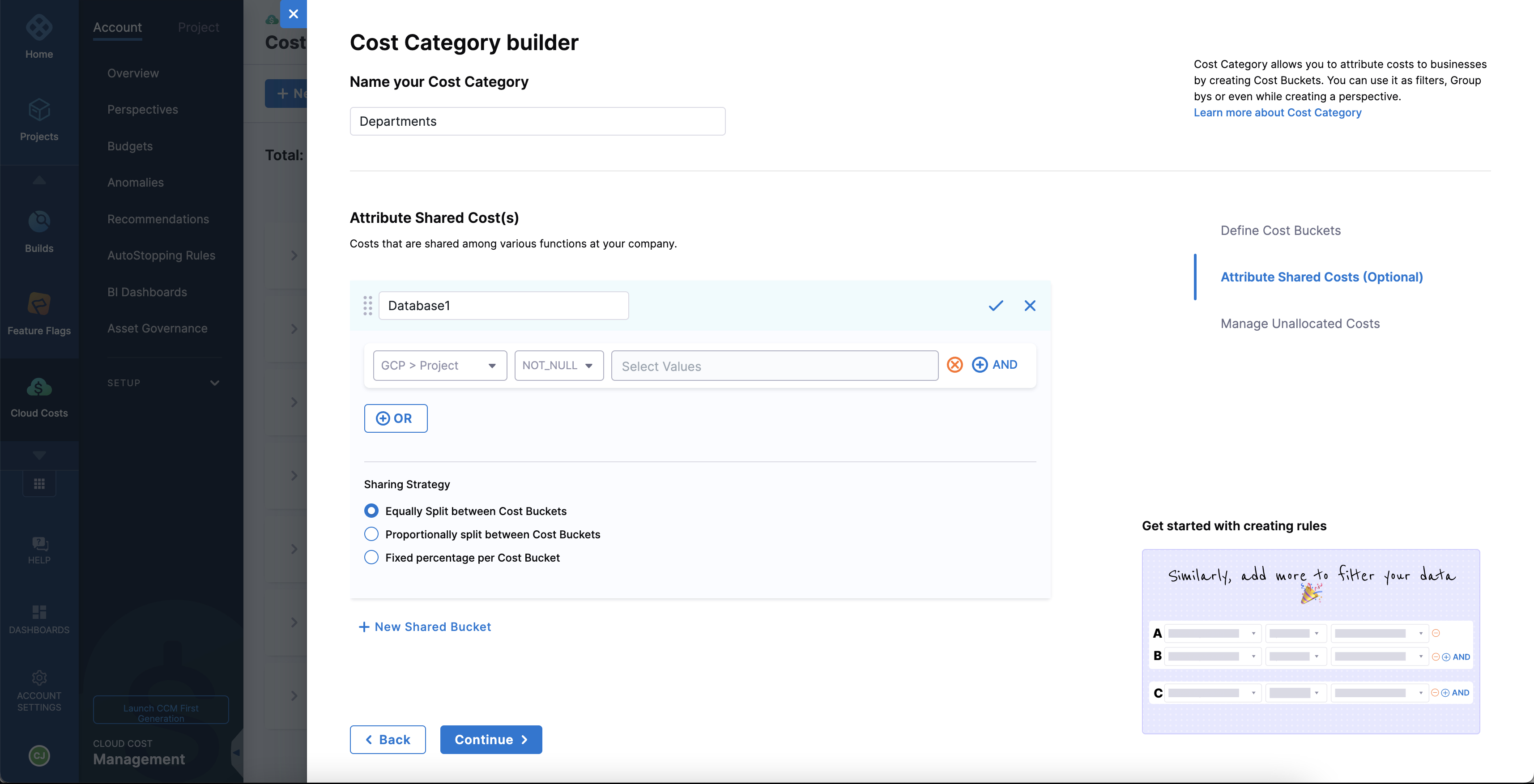 - Cost Category Rule Validation Error on Save: When creating a cost category with a cost bucket rule referencing another Cost Category as "not null", saving the configuration would produce an error on the Cost Category field within the Cost Bucket rule. This has been fixed.[CCM-30294].