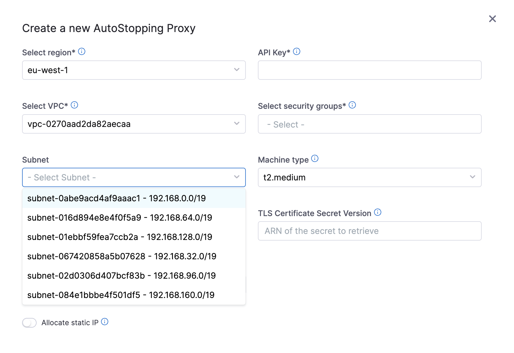 "cloudProvider": "AWS",