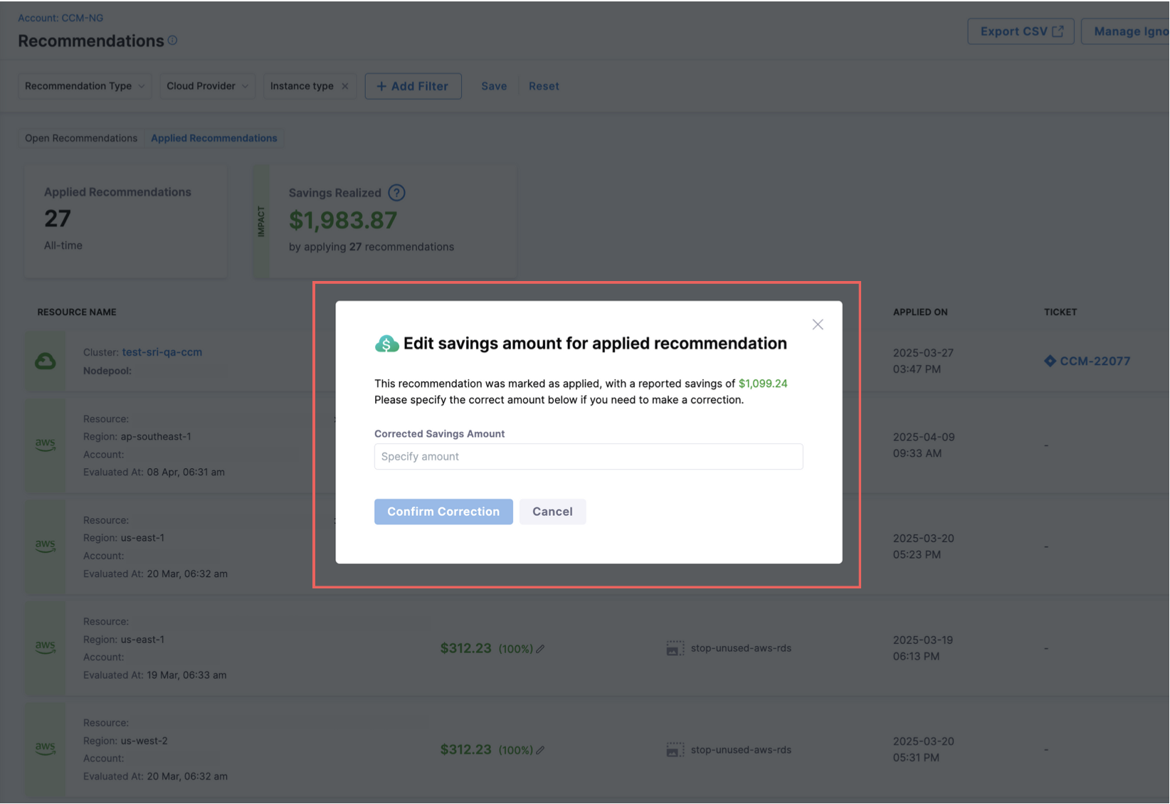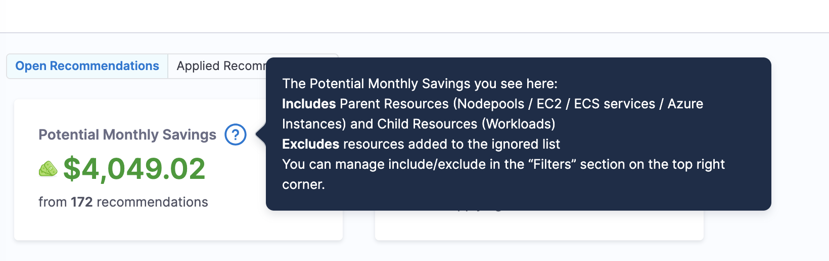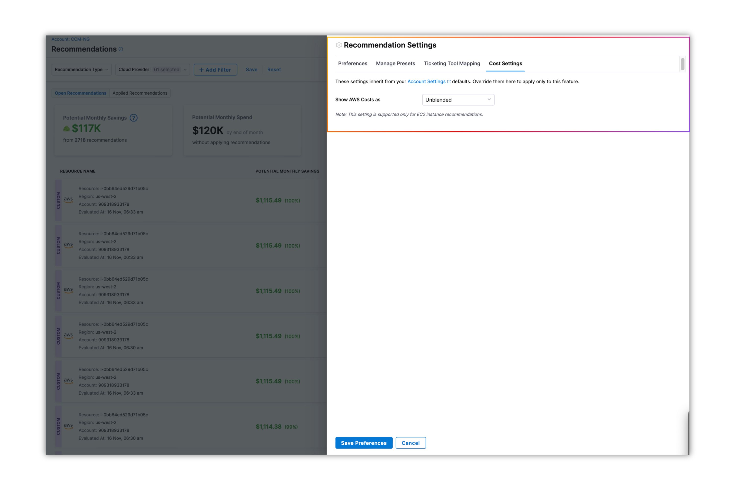 We were showing $0.00 recommendation savings for ECS. Now only recommendations with minimum savings amount > $1 are shown on the list page.