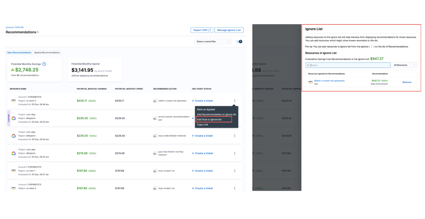 - Refresh recommendation resources and instance details (CCM-8720)