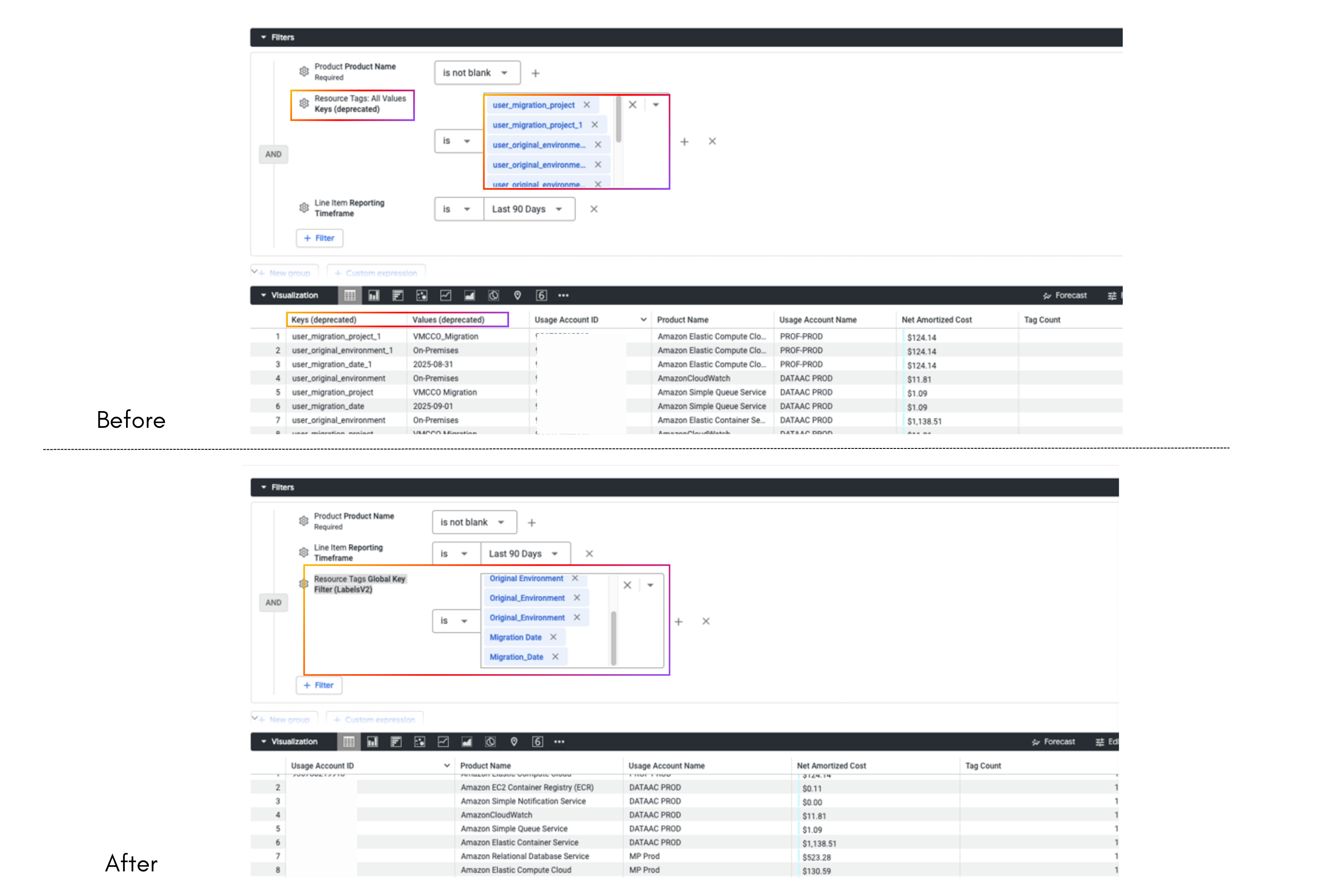 Element-Level Changes: For individual tiles and elements, the script will swap out the old reporting_timeframe filter for a standard start_date filter.