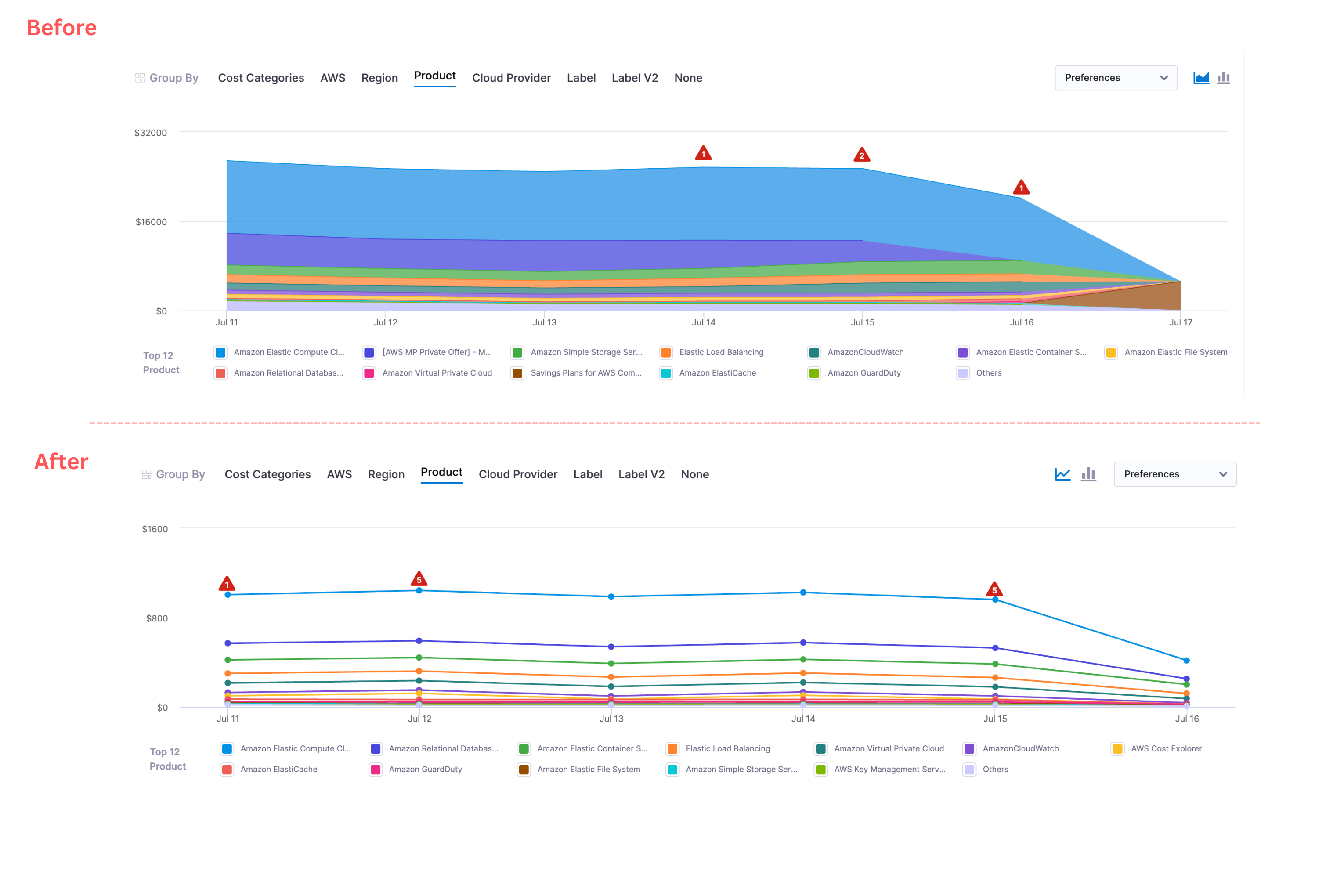Anomalies Widget Enhancement: The Anomalies legend in the Cloud and Cluster Spend widget is now automatically disabled when both Cluster Spend and Cloud Spend are deselected, ensuring anomalies are only displayed alongside relevant cost data. [CCM-26683]