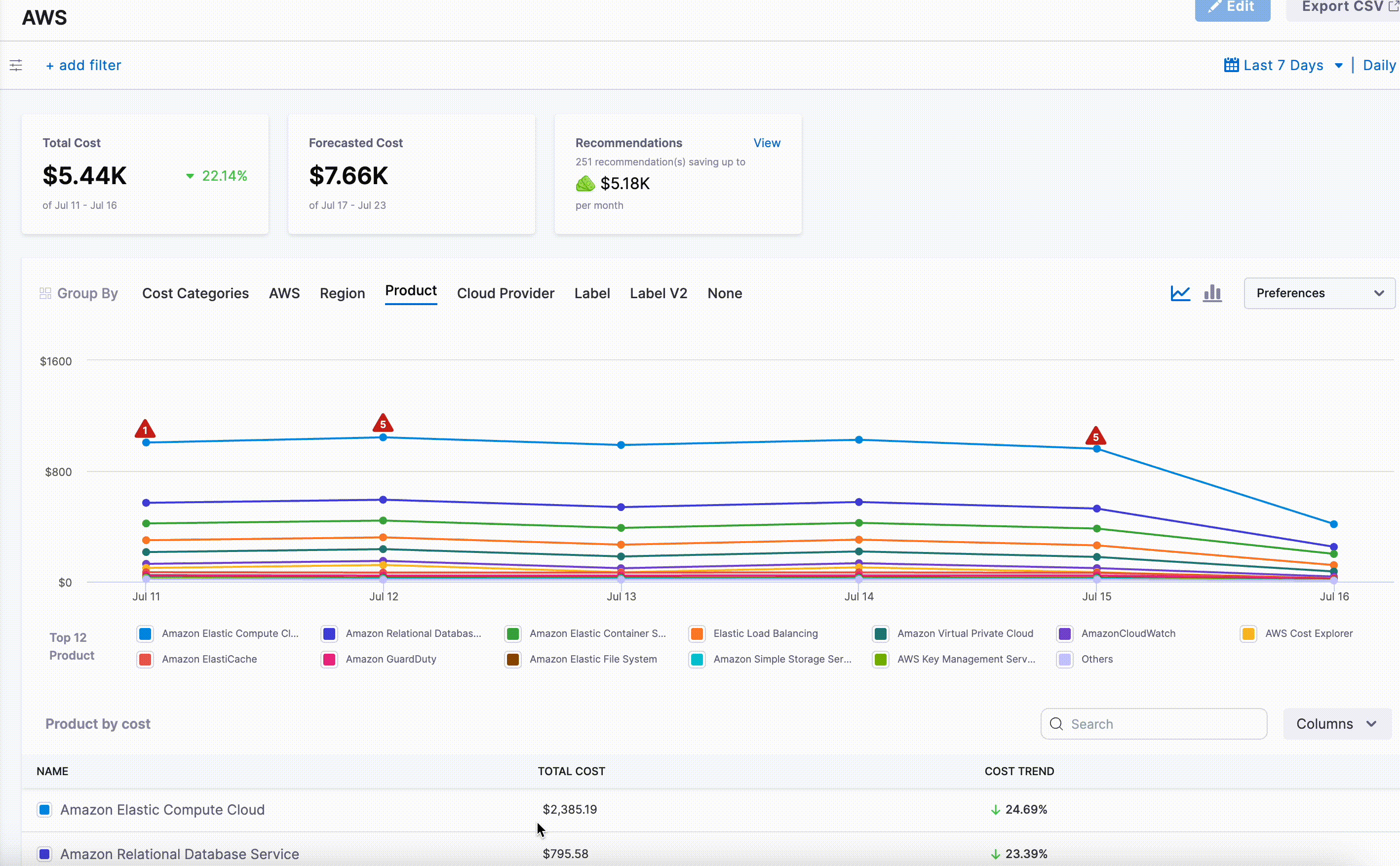 "description": "Discover and track analytical insights into your AWS cloud costs",