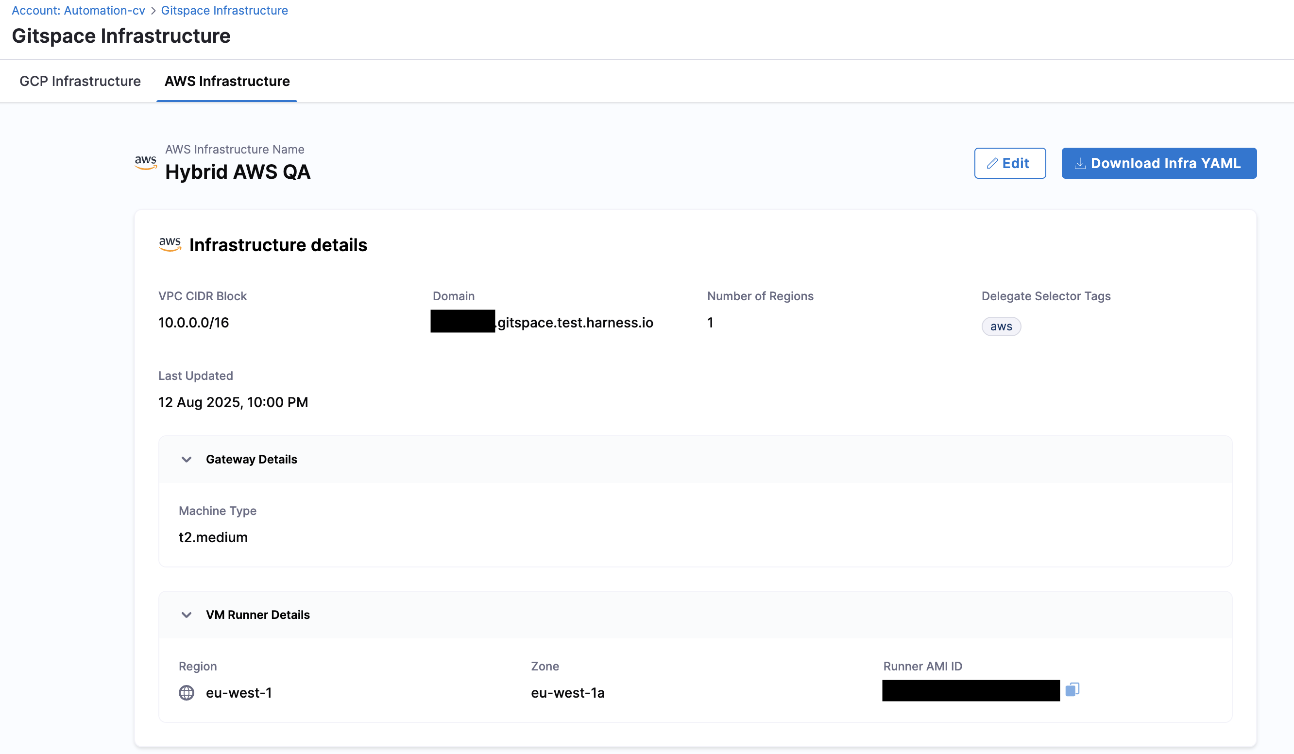 • AWS infrastructure support for Self-Hosted Gitspaces